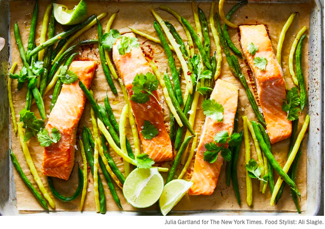 Cook: Maple & Miso Sheet Pan Salmon with Green Beans. 20 minutes. Honest. And you likely have most of the non-perishable ingredients already. Maybe not miso– but why don’t you have miso? It’s good on so many things! This quickly became a staple in my house. Sometimes I swap brussels for the beans, but beans are better. Also from The New York Times, and a gift/should work if you’re not a subscriber.